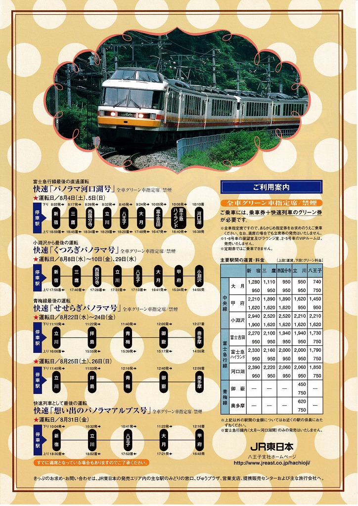 ゆずコレ◆JR東日本・八王子支社 さよならパノラマエクスプレスアルプス号 パンフレット 2001年