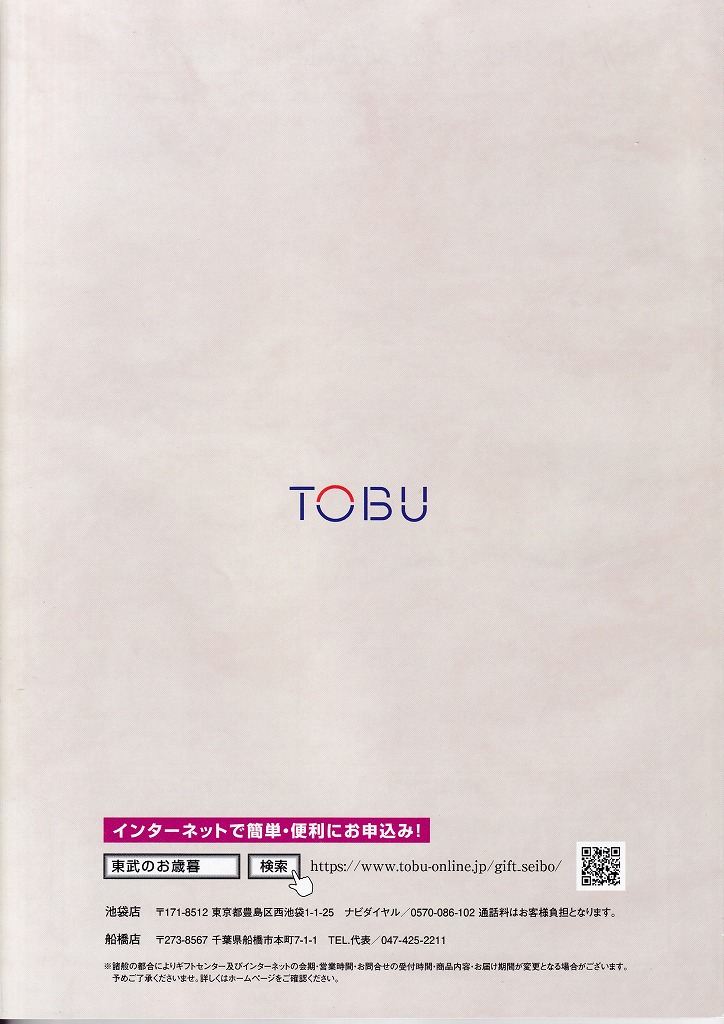 東京都池袋に本店があるデパート「東武百貨店」の、お中元とお歳暮カタログの表紙をご紹介いたします。
