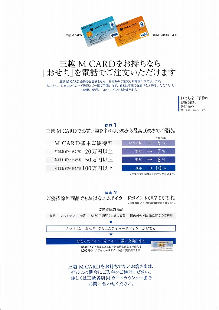 東京都日本橋に本店があるデパート「三越」の、おせち料理カタログの表紙を紹介いたします。