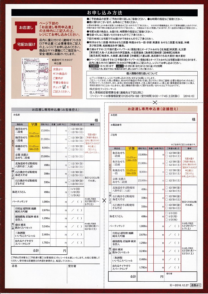- ファミリーマートの2015年版おせち料理カタログです。