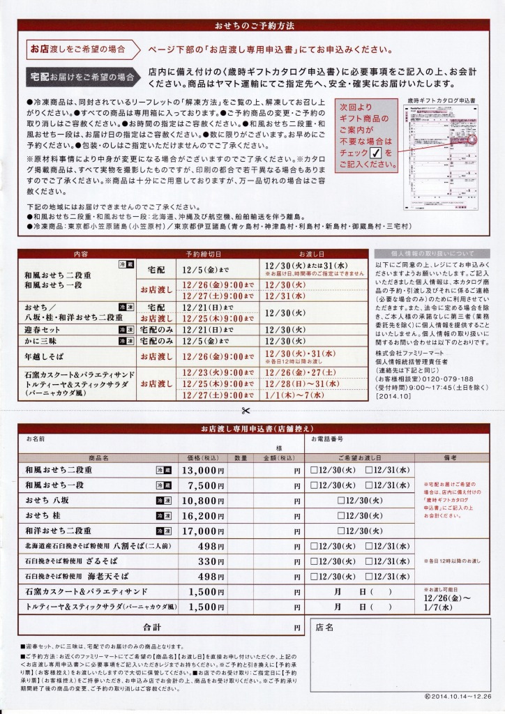 - ファミリーマートの2014年版おせち料理カタログです。