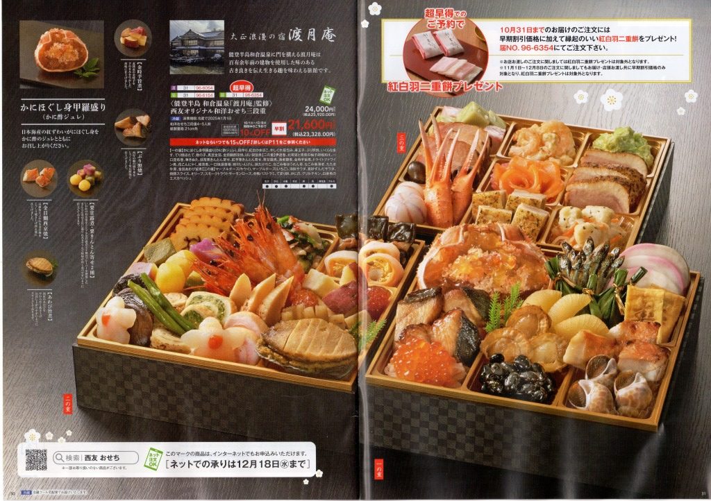 スーパーマーケット「西友」の、2024年(令和6年)版クリスマスケーキ・2025年(令和7年)版おせち料理カタログの表紙をご紹介いたします。