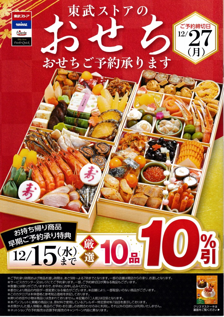 スーパーマーケット「東武ストア」の、おせち料理カタログの表紙をご紹介いたします。