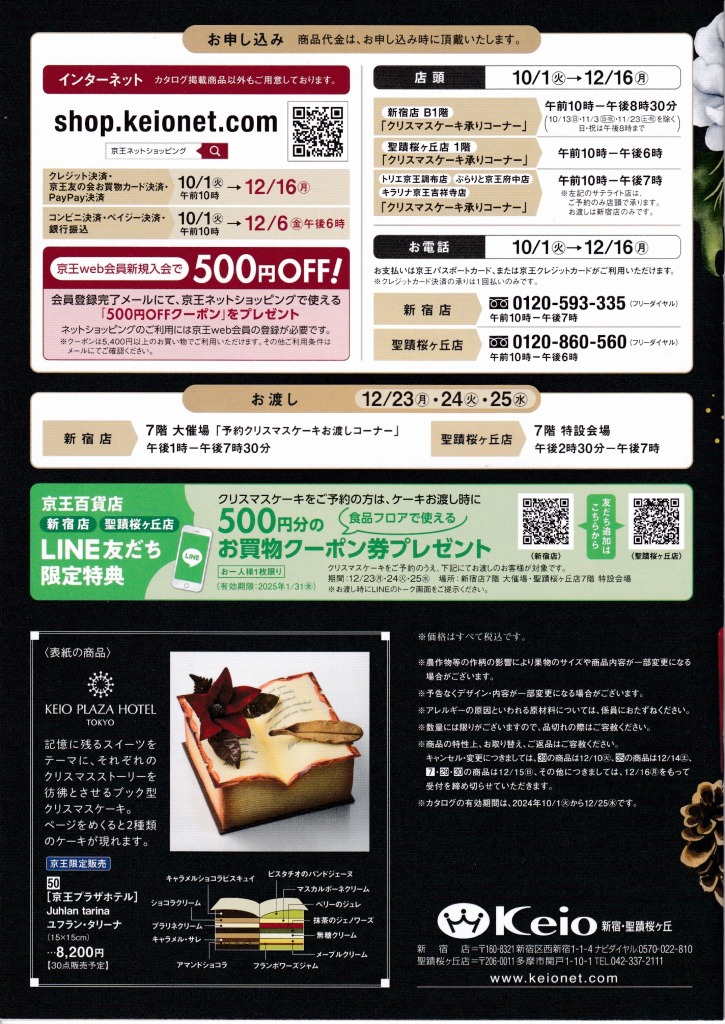 - 京王百貨店の2024年版クリスマスケーキカタログです。
