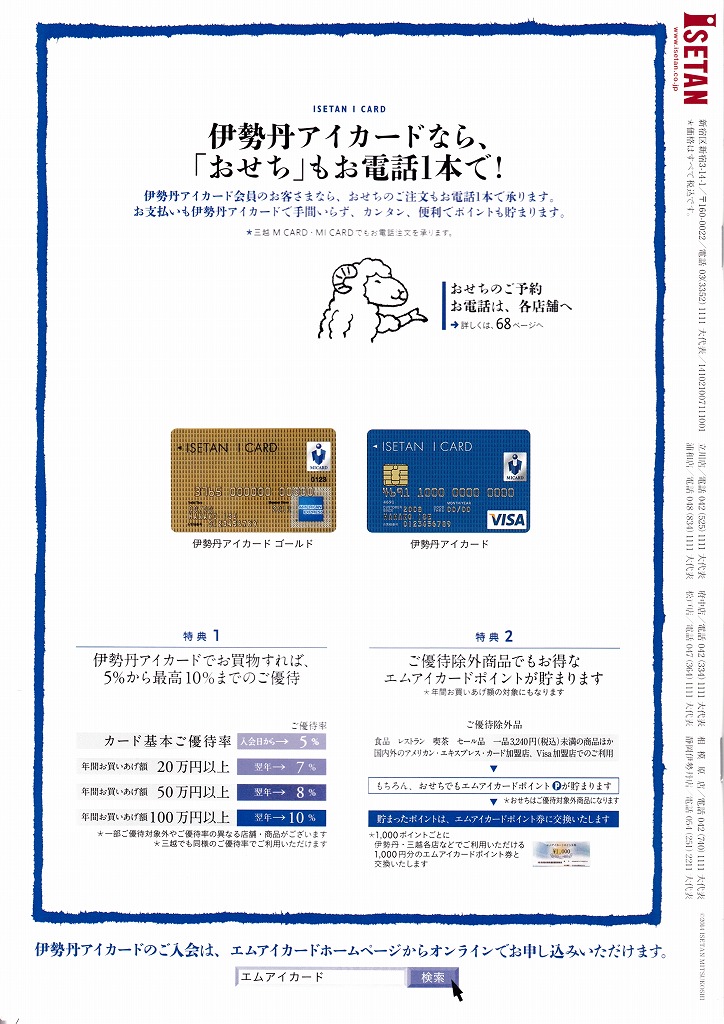 デパート「伊勢丹」の、2015年(平成27年)版おせち料理カタログの表紙を紹介いたします。