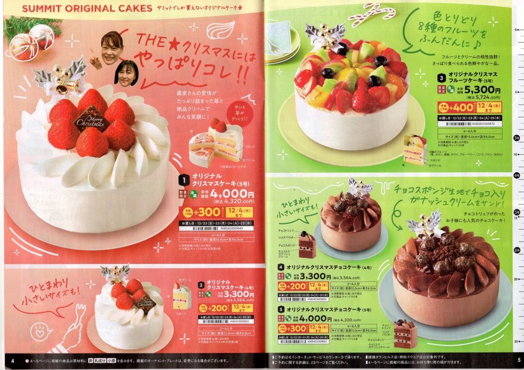 スーパーマーケット「サミット」の、2024年(令和6年)版クリスマスケーキ・2025年(令和7年)版おせち料理カタログの表紙をご紹介いたします。