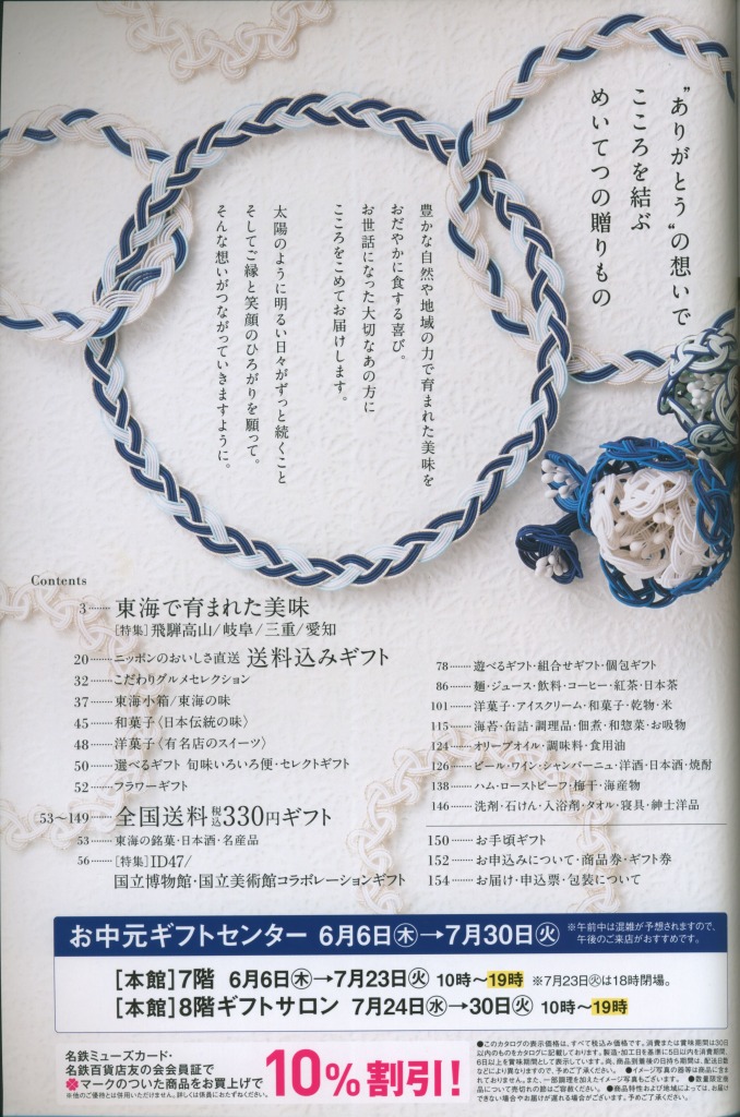 デパート「名鉄百貨店」の、2024年(令和6年)版お中元カタログの表紙をご紹介いたします。