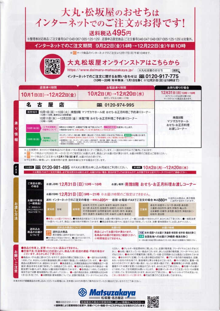 松坂屋の2024年版おせち料理カタログ(名古屋地区版)です。
