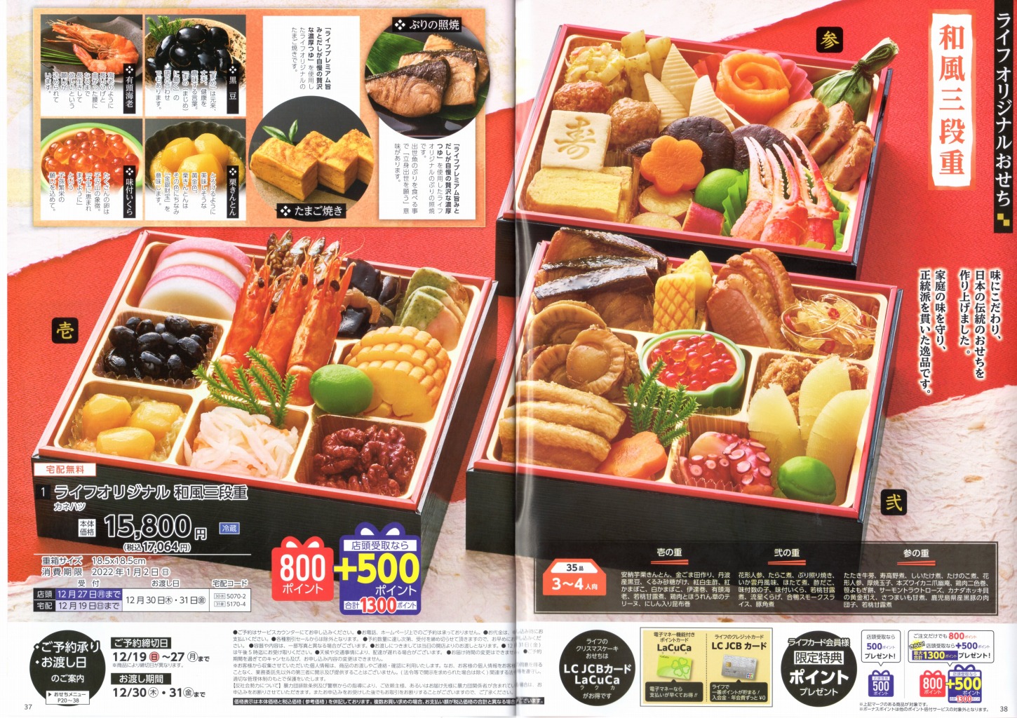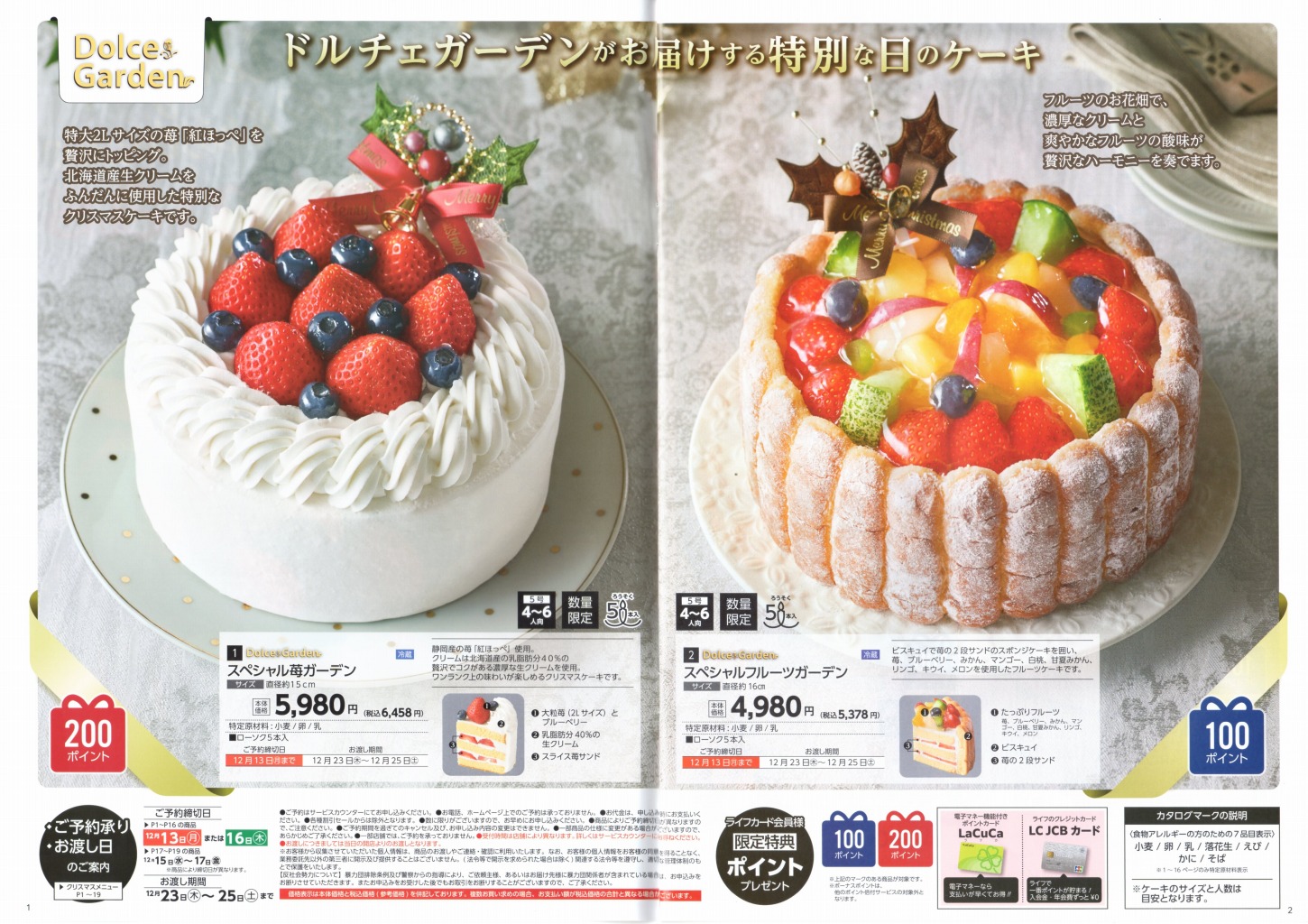 - ライフの2021年版クリスマスケーキカタログと、2022年版おせち料理カタログ(首都圏版)です。(両面仕様)