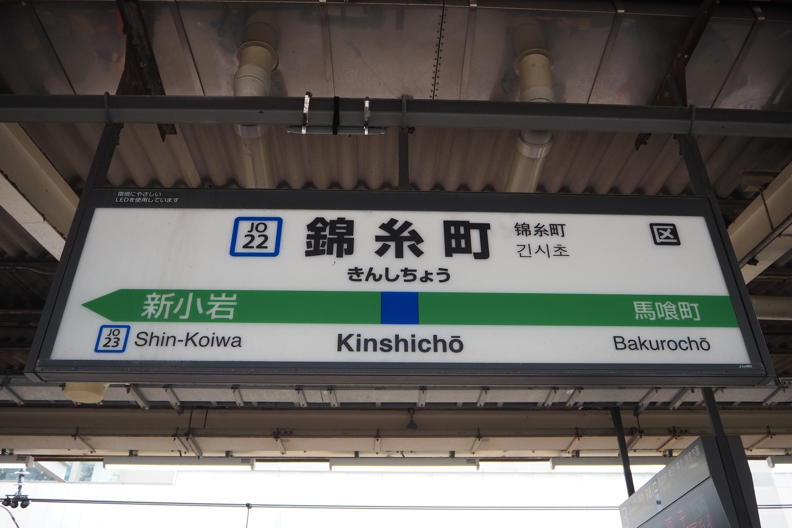 JR総武快速線 錦糸町駅 下り 駅名標 / ゆずごフォト CC-BY フリー素材写真配布