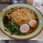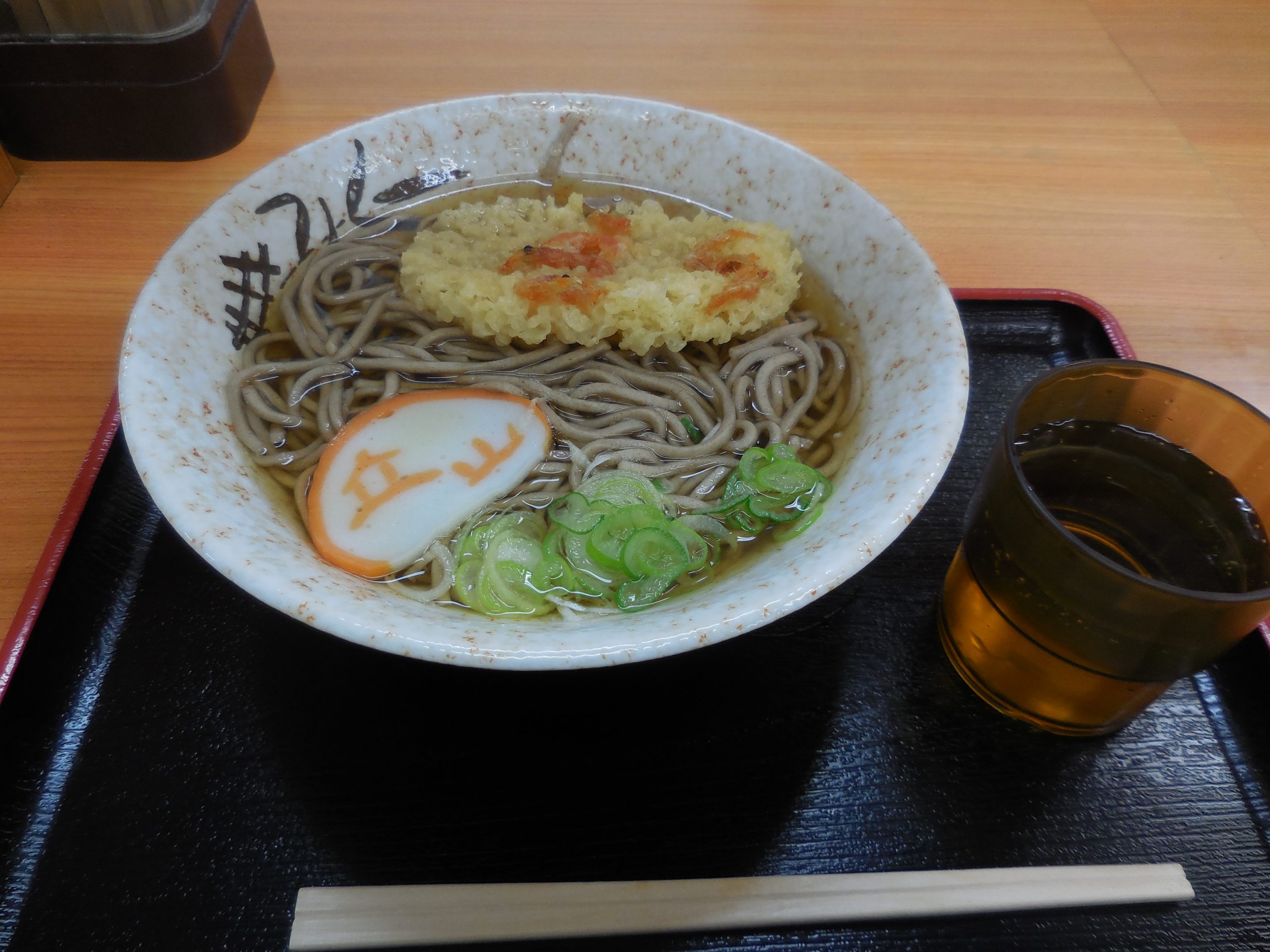 富山駅で食べた、かき揚げそばです。