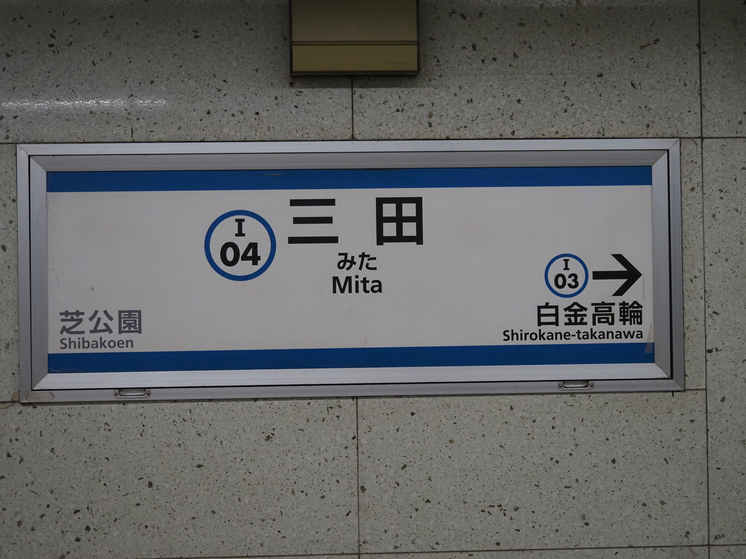 都営三田線 三田駅 目黒方面 駅名標 / ゆずごフォト CC-BY フリー素材写真配布