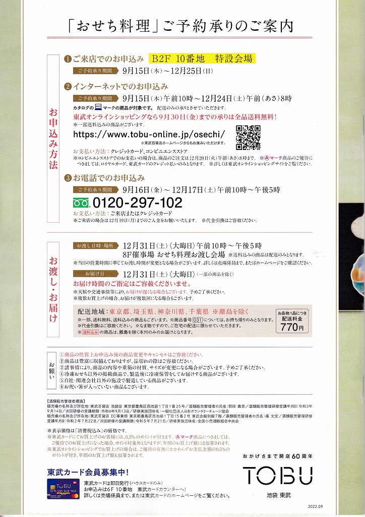- 東武百貨店の2023年版おせち料理カタログです。