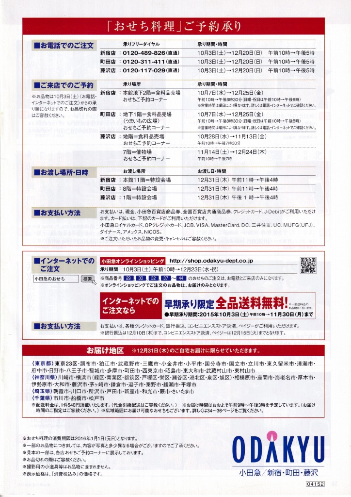 - 小田急百貨店の2016年版おせち料理カタログです。