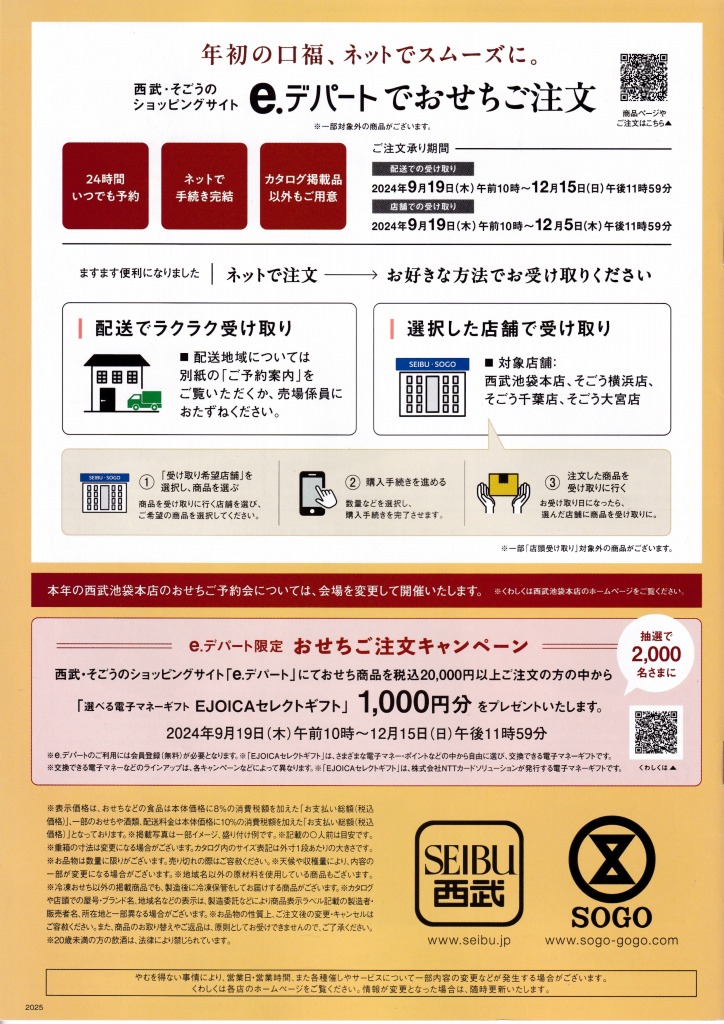 - そごう・西武百貨店の2025年版おせち料理カタログです。