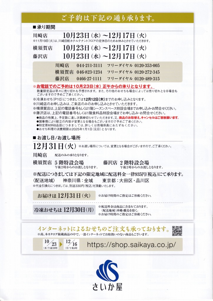 - さいか屋の2025年版おせち料理カタログです。