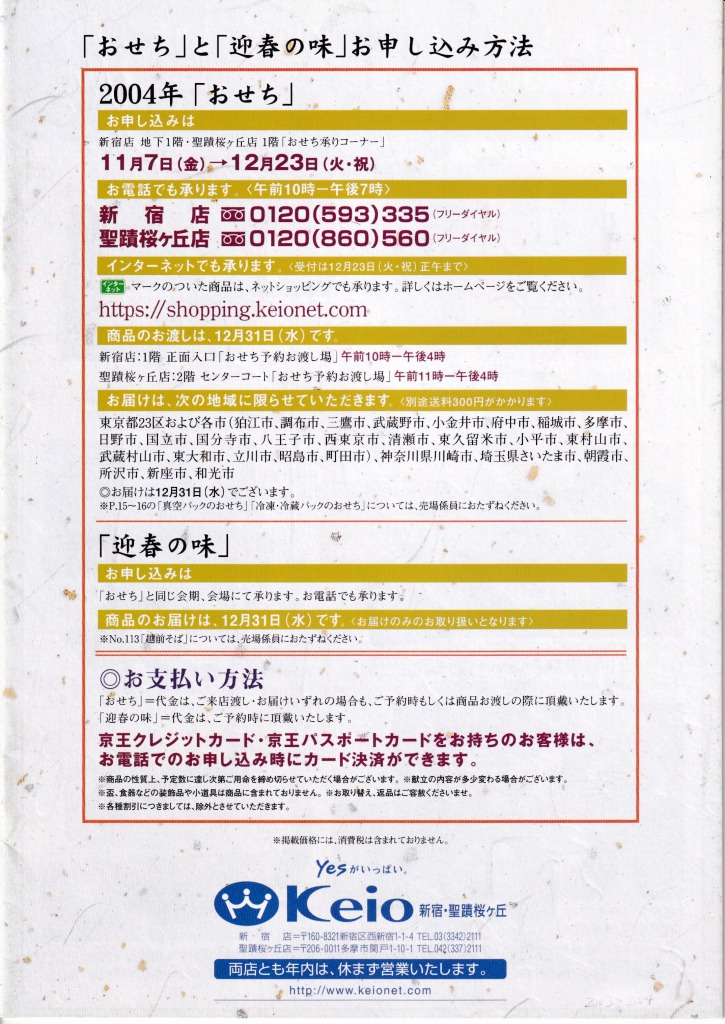 ゆずコレ◆京王百貨店 2004年版 おせち料理カタログ