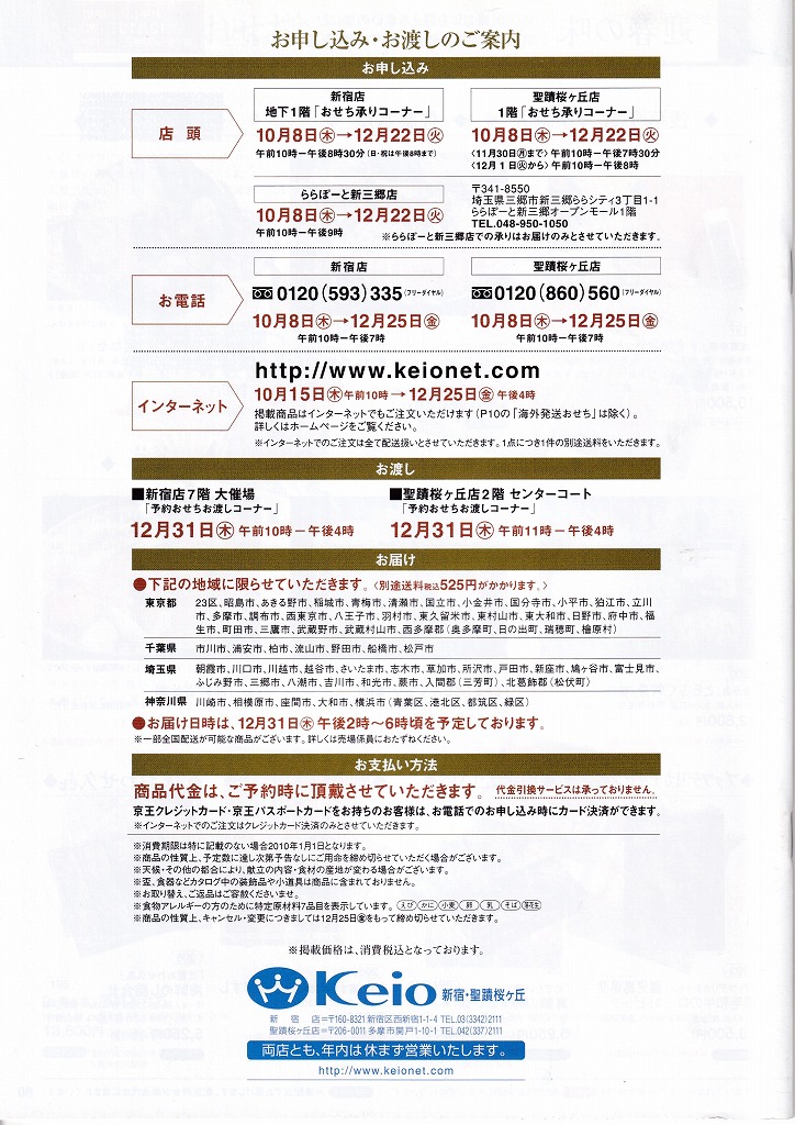 京王百貨店の2010年版おせち料理カタログです。