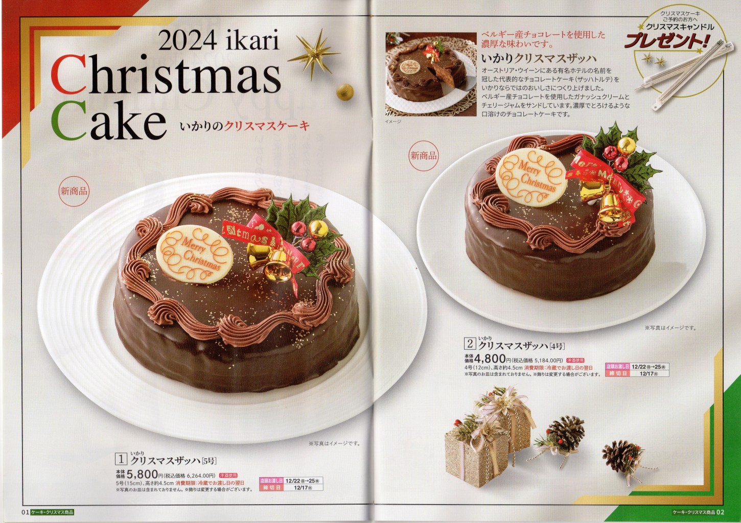 いかり の2024年版クリスマスケーキカタログと、2025年版おせち料理カタログです。(両面仕様)