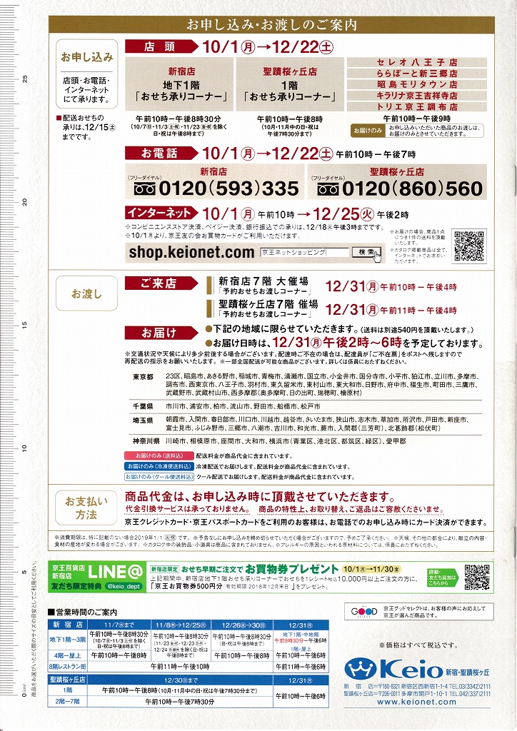 - 京王百貨店の2019年版おせち料理カタログです。