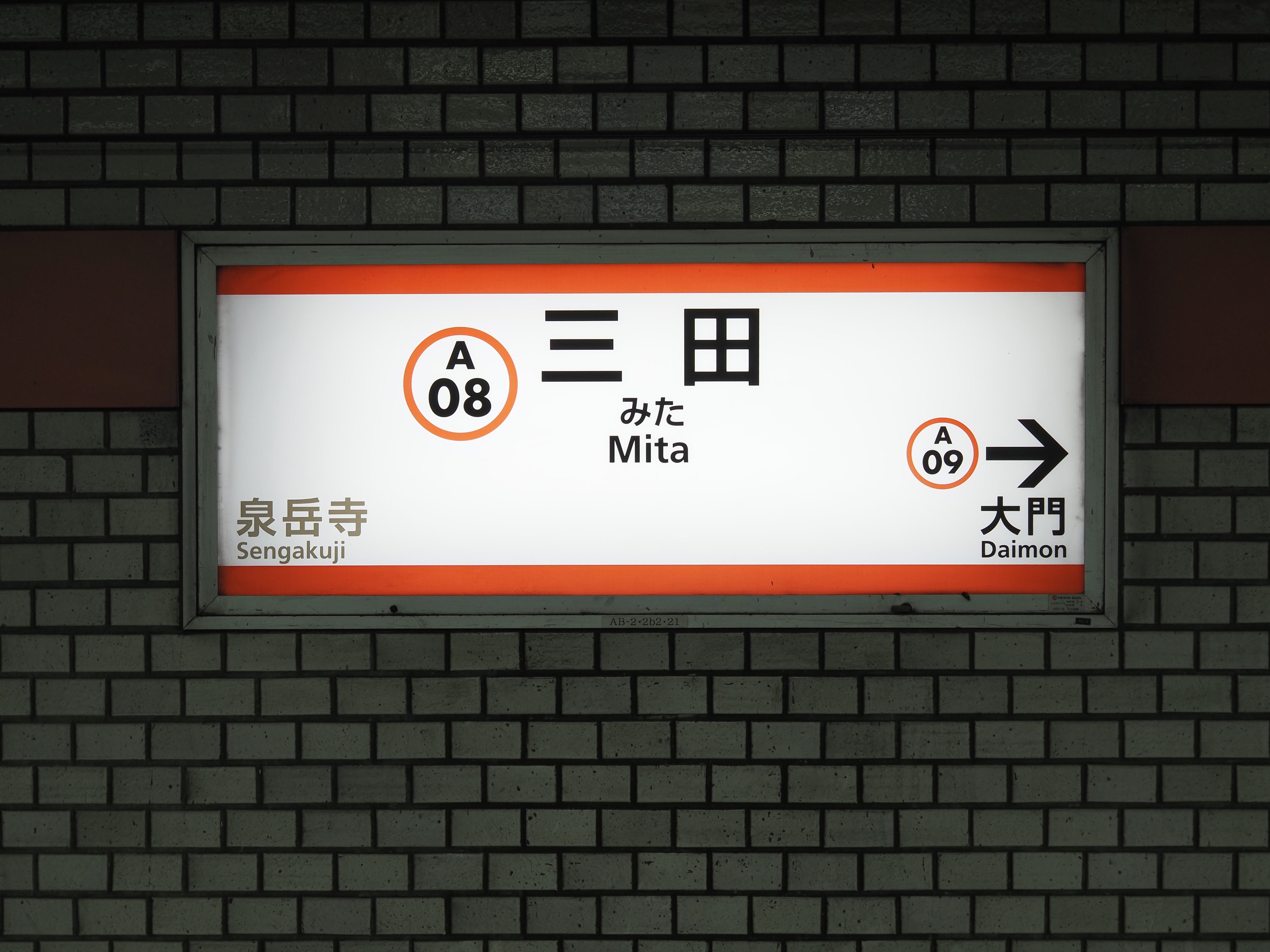Title - 都営浅草線 三田駅 押上方面 駅名標