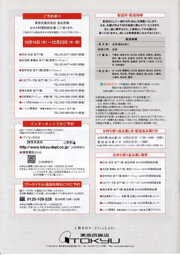 おせち料理カタログデパート「東急百貨店」の、2010年(平成22年)版おせち料理カタログの表紙をご紹介いたします。